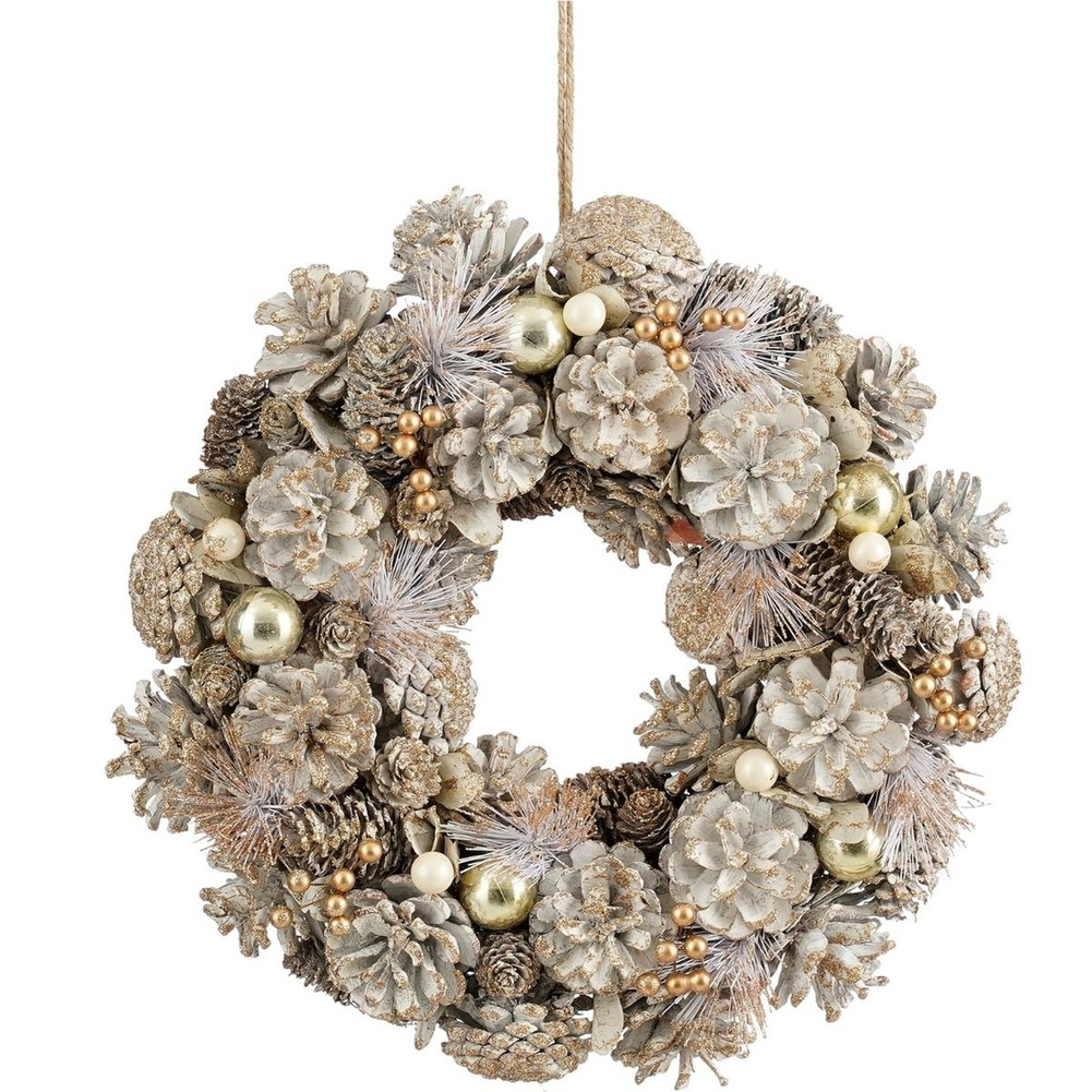 WIANEK DEKORACYJNY 34 CM ZŁOTY Z SZYSZKAMI I BOMBKAMI MICA