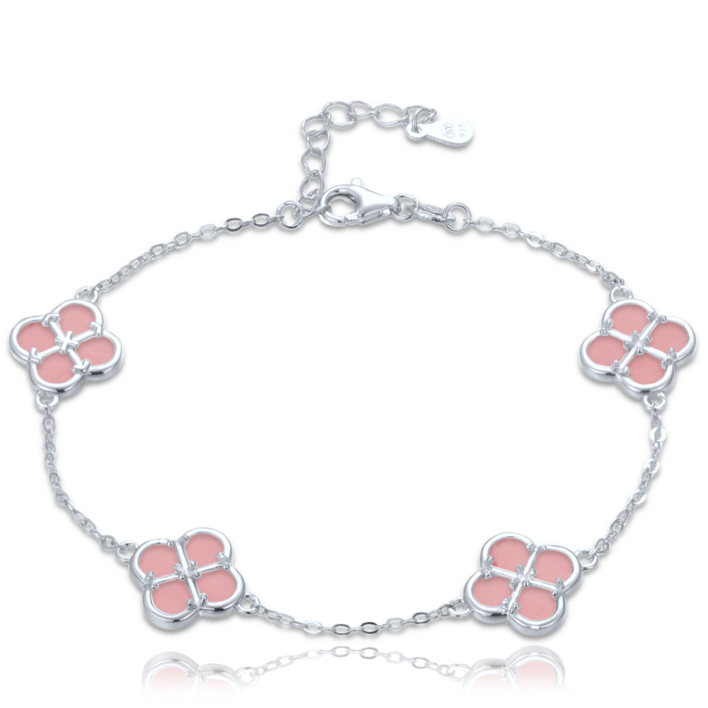 MINET Srebrna bransoletka koniczyna z jadeitem