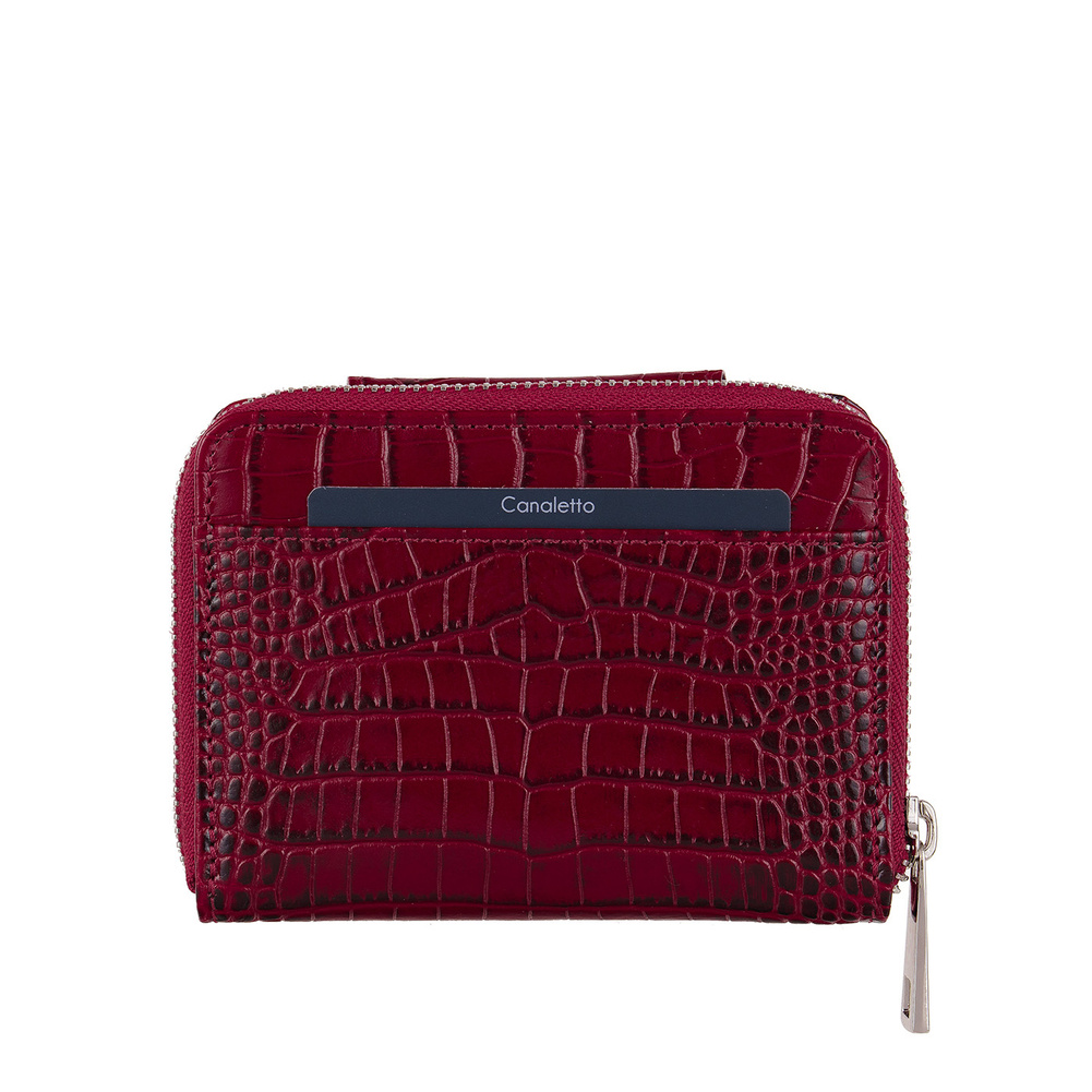Portfel został wykonany z najwyższej jakości skóry naturalnej, zdobionej tłoczeniem wzoru krokodyla. To materiał o wyjątkowej wytrzymałości i szlachetnym wyglądzie, który dodaje całości luksusowego charakteru. Subtelne logo Canaletto zdobi zewnętrzną część portfela, podkreślając jego ekskluzywny styl.