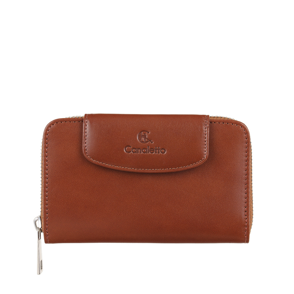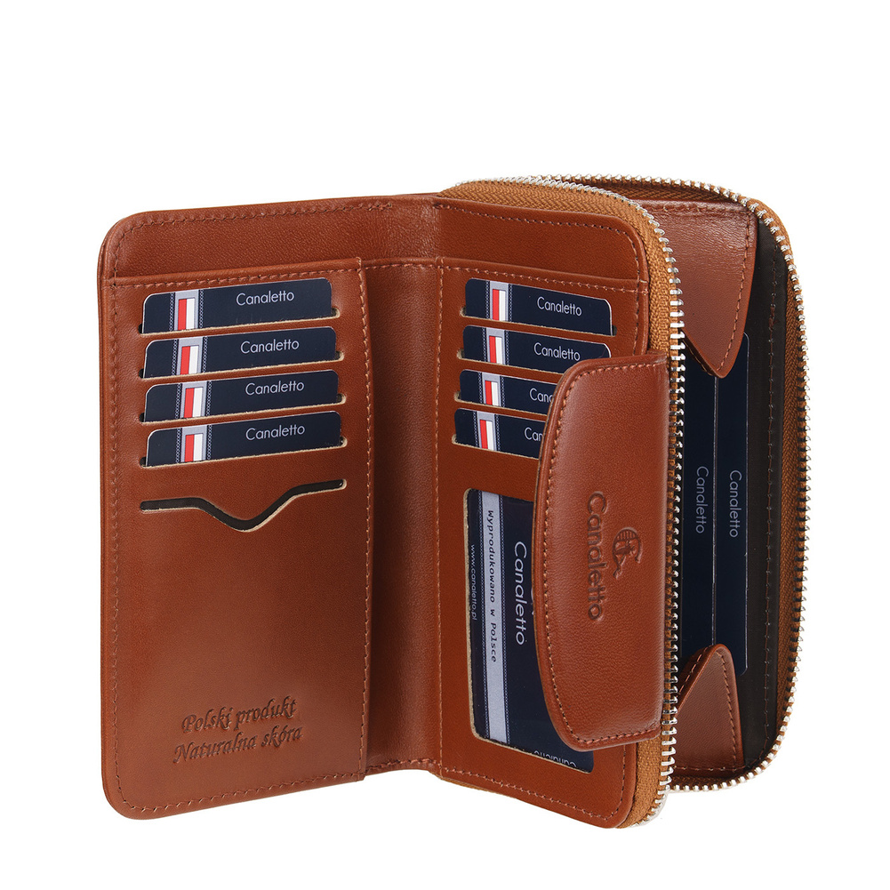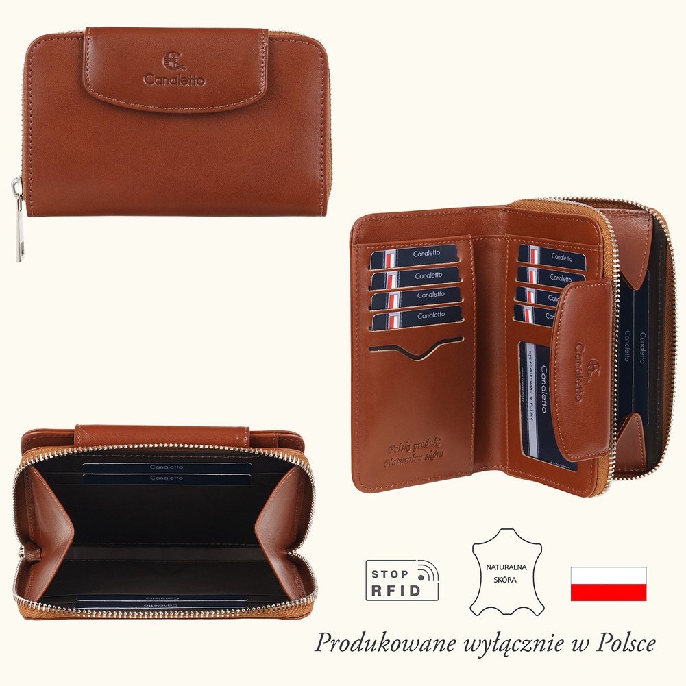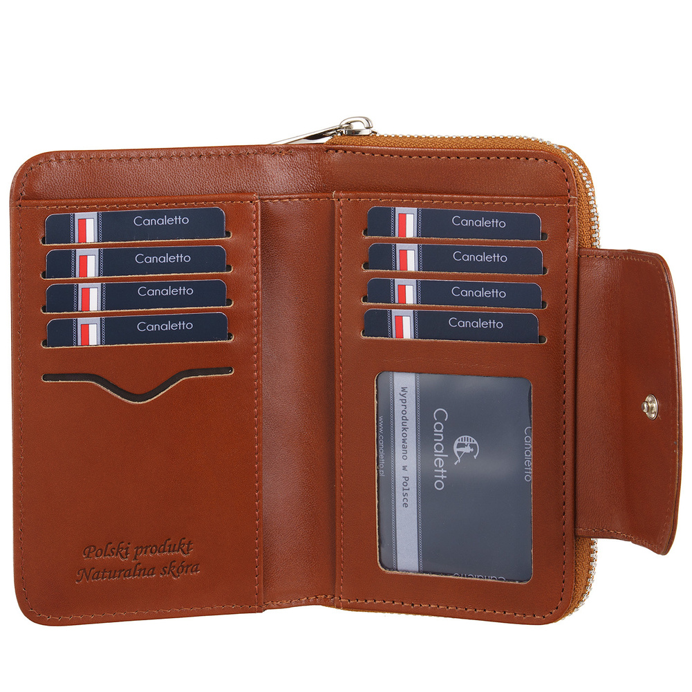Koniakowy damski portfel skórzany Canaletto – elegancja, funkcjonalność i tradycja w nowoczesnym wydaniu