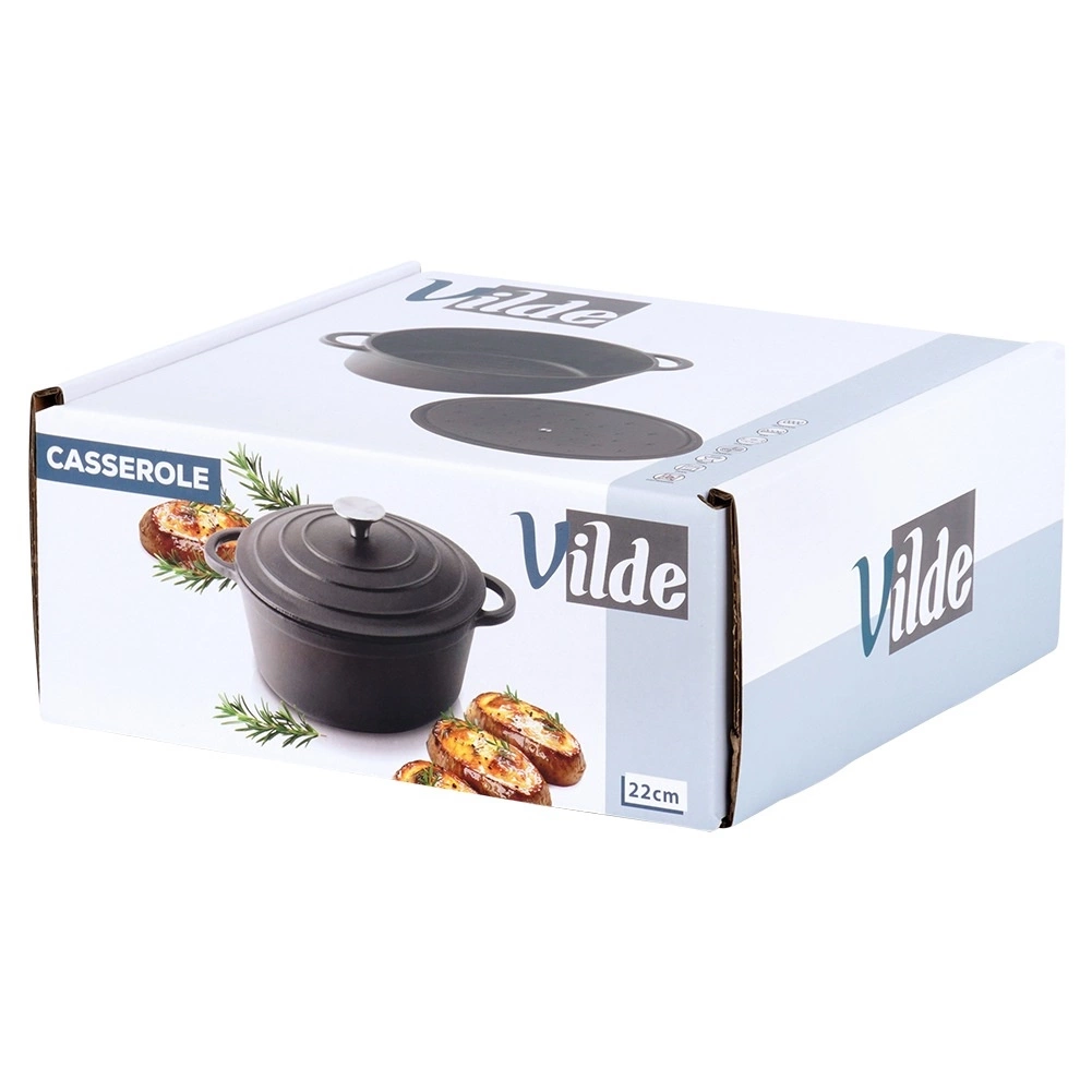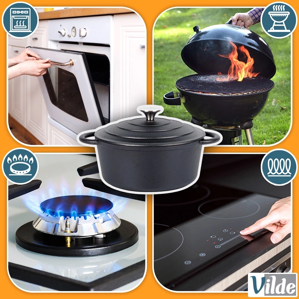 Garnek żeliwny z pokrywką przydatny w każdym domu. Idealny do gotowania, pieczenia, duszenia oraz smażenia potraw. Potrawy przygotowane w garnku będą soczyste i aromatyczne. Możemy użytkować ją w każdej kuchence, ale również bezpośrednio na grillu, czy ogniu. Żeliwo rozgrzewa się równomiernie i długo utrzymuje ciepło, dzięki czemu serwowane dania dłużej będą ciepłe. UWAGA! Po każdym użyciu umyć, wytrzeć suchą szmatką do sucha i natłuścić - w przeciwnym razie na naczyniu pojawi się rdza, co jest naturalnym procesem dla tego typu materiału. Naczynie nie posiada żadnych powłok typu "teflon". Regularna pielęgnacja zapobiega korozji i zapewnia długotrwałe użytkowanie naczynia. Oryginalny produkt marki Vilde z linii Cast Line. Wyprodukowano zgodnie z europejskimi standardami.