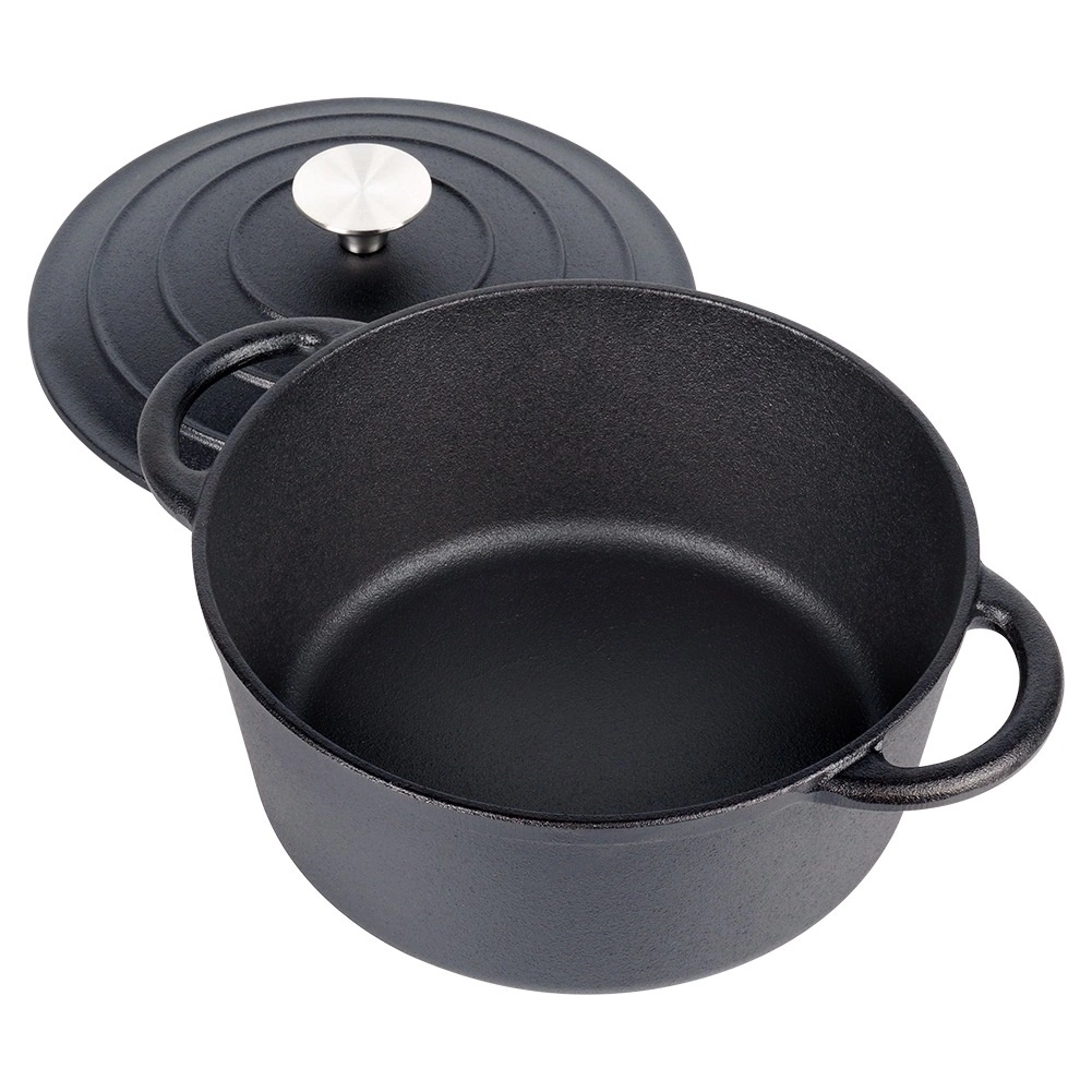 - Uniwersalne zastosowanie - Garnek żeliwny sprawdzi się do gotowania, duszenia, pieczenia i zapiekania różnych potraw. Idealny do przygotowywania aromatycznych gulaszy, zapiekanek, zup, dań jednogarnkowych oraz pieczonego mięsa. Doskonały zarówno do codziennego gotowania w kuchni, pieczenia na grillu, jak i do przygotowywania posiłków podczas kempingu. Naczynie pozwala na bezpośrednie serwowanie dań, które dzięki właściwościom żeliwa długo pozostaną ciepłe.