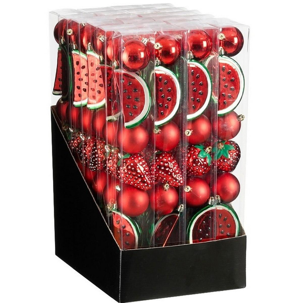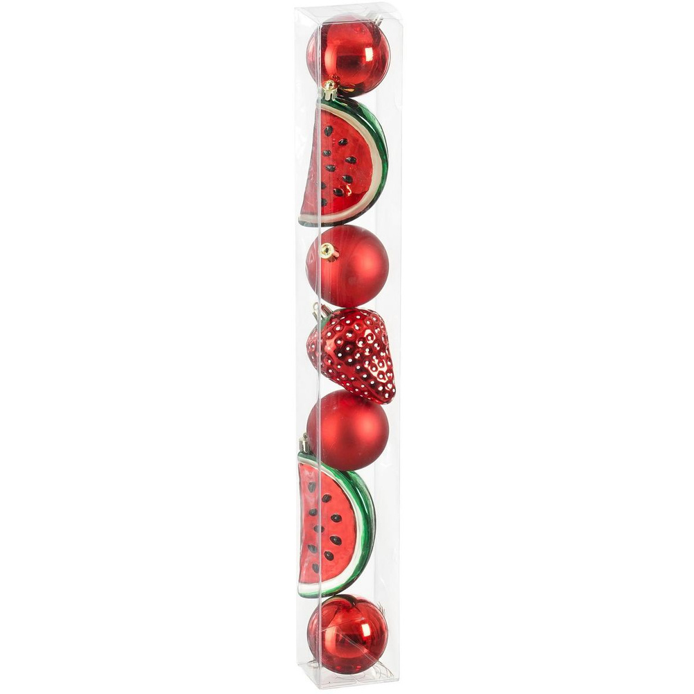 - mieszanka kulistych bombek z 2 w kształcie arbuza i 1 w kształcie truskawki