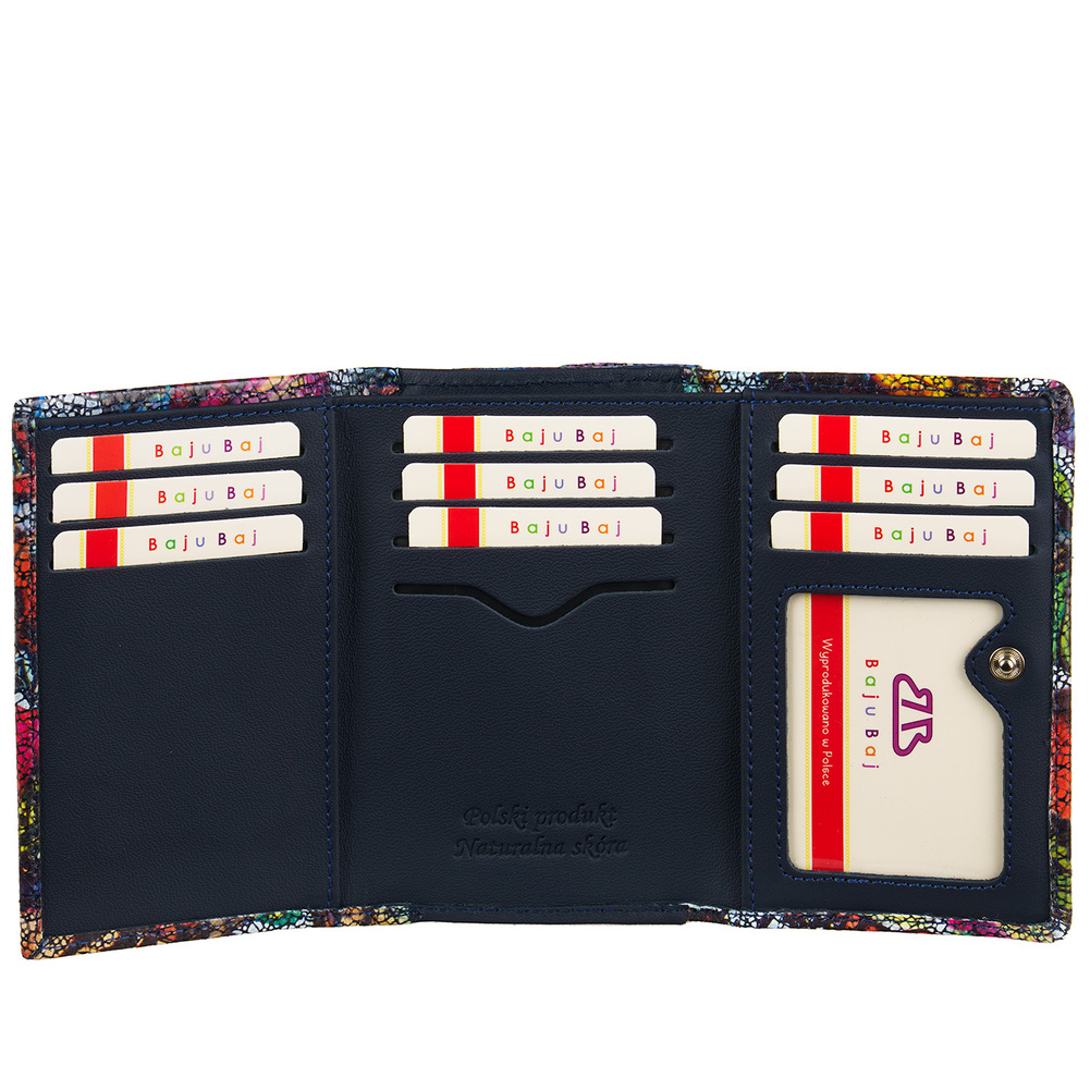 Kolorowy portfel damski BajuBaj to połączenie radosnego stylu, praktycznej funkcjonalności i nowoczesnej ochrony RFID.
