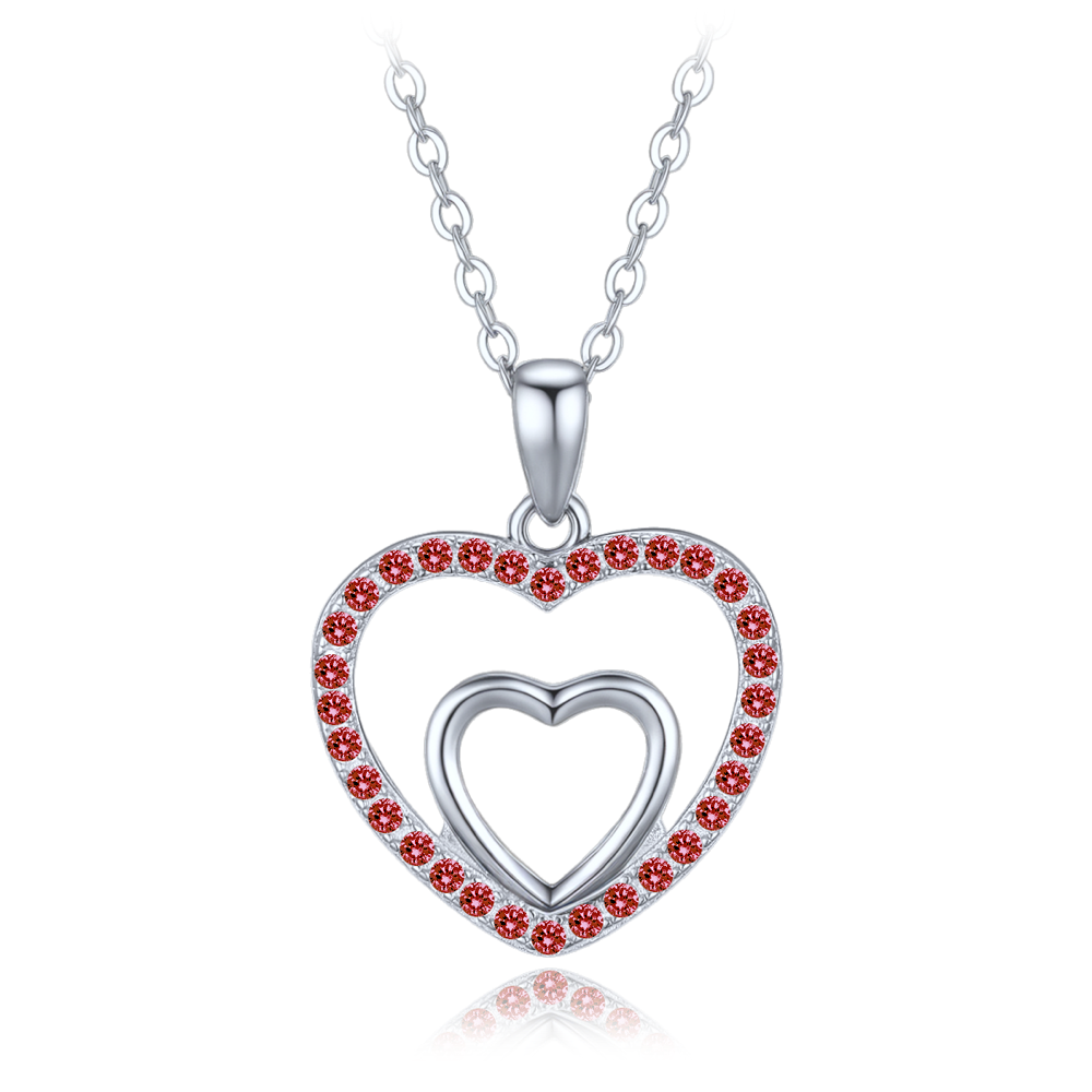 MINET Srebrny naszyjnik serce z czerwonymi cyrkoniami