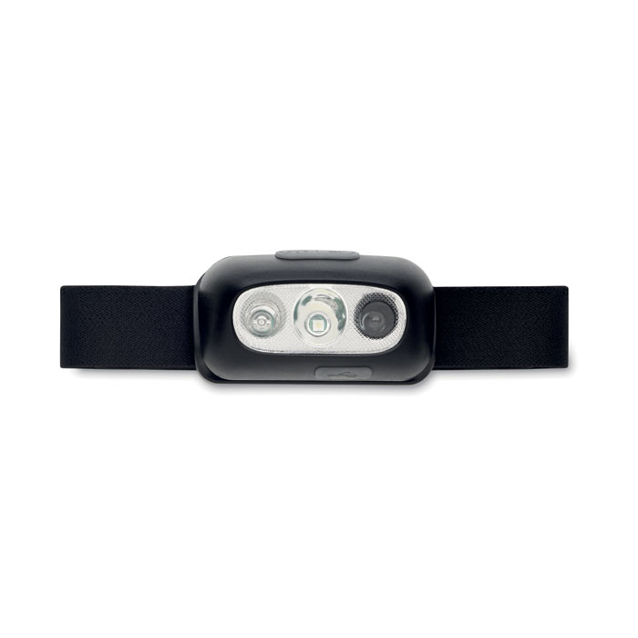 Ładowalna i regulowana latarka czołowa z 1 diodą LED (50 lumenów) i 3 trybami świecenia. Wbudowany akumulator 400 mAh. Dołączony kabel do ładowania.