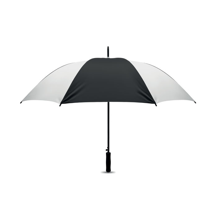 Parasol automatycznie otwierany o średnicy 27 cali. Wykonany z poliestru pongee 190T, prosta rączka z EVA. Czarny lakierowany stelaż i czarne plastikowe końcówki. Zamykany manualnie.