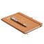 Zestaw upominkowy. Notatnik A5 z twardą okładką, wykonany w 75% ze skóry z recyklingu. Oprawiony. 160 stron w linie (80 kartek)z papieru z recyklingu. Dopasowana gumka zamykająca, wstążkowy znacznik stron i uchwyt na długopis. Dopasowany metalowy długopis. Niebieski tusz. Zapakowany w papierowe pudełko. FSC®-certified | FSC MIX CREDIT, P7.1, FSC-C213206