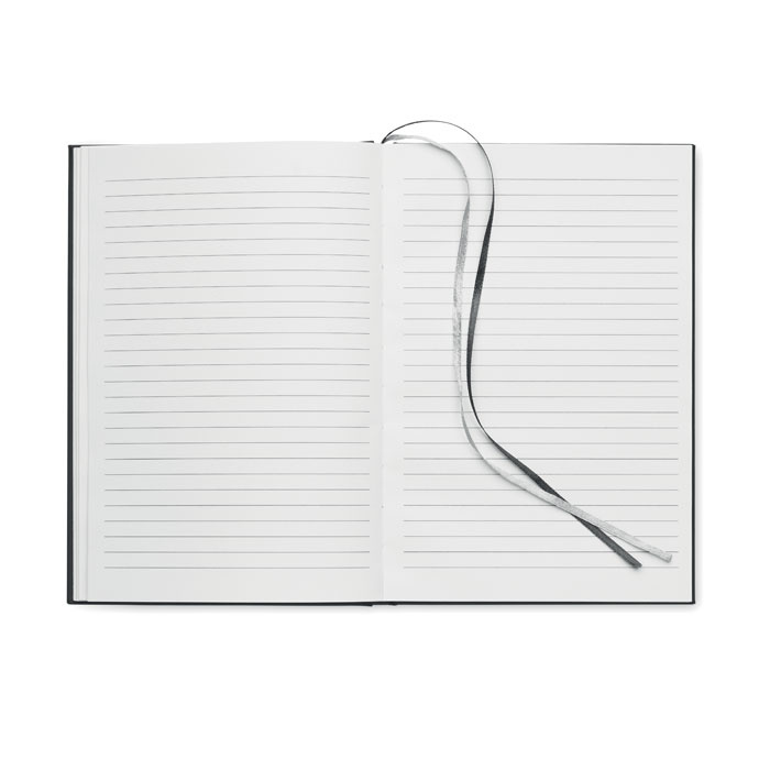 Notatnik A5 z okładką wykonaną w 60% z poliestru pochodzącego z recyklingu i w 40% z PU. 256 stron w linie na papierze z recyklingu o gramaturze 70 g/m² (128 arkuszy). Z 2 znacznikami stron z taśmy poliestrowej.