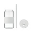 Wysoki kubek ze szkła borokrzemowego z silikonową pokrywką i uchwytem.