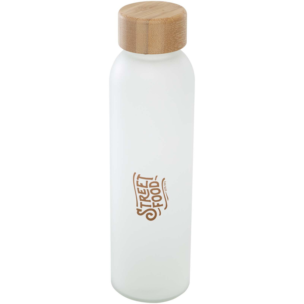 Butelka jednościenna ze szkła matowego o pojemności 500 ml wykonana ze szkła sodowo-wapniowego z bambusową zakrętką.