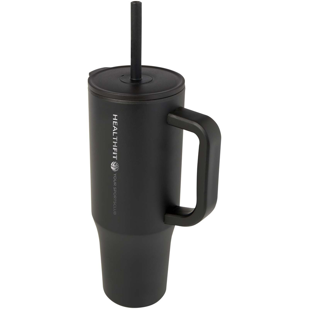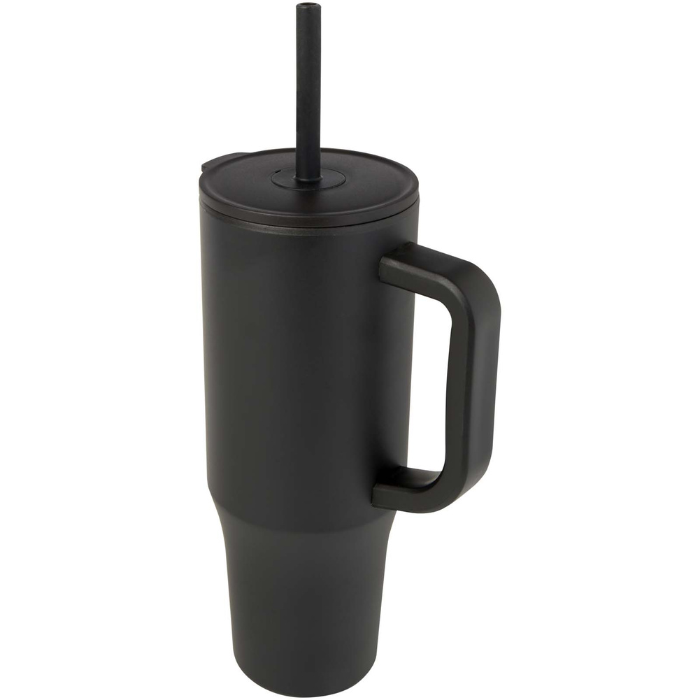 Kubek z trwałą ścianką zewnętrzną wykonaną ze stali nierdzewnej z recyklingu, z certyfikatem RCS i z wewnętrzną ścianką z tworzywa.