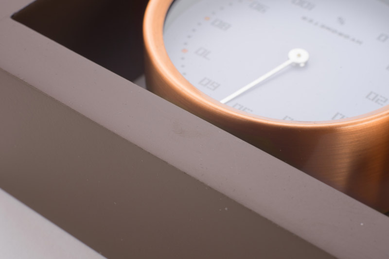Zegar z funkcją budzika, termometr i higrometr przymocowane do drewnianej obudowy. Wymaga baterii: AA x 1 szt. Bateria nie dołączona.