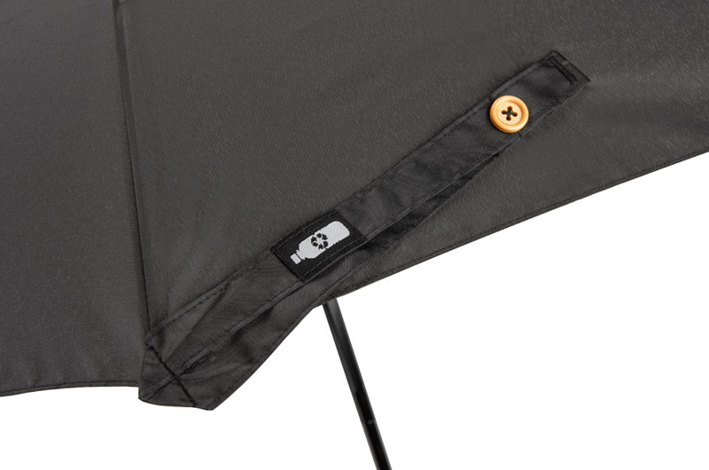 Parasol RALO to stylowe i wygodne rozwiązanie na każdą pogodę. Dzięki automatycznemu mechanizmowi otwierania i zamykania rozkłada się jednym przyciskiem umieszczonym na drewnianej rączce. Czasza z wytrzymałego materiału rPET poliester 190T skutecznie chroni przed deszczem, a stelaż z metalu i włókna szklanego zwiększa odporność na wiatr. Całość dopełnia drewniany guzik na pasku zamykającym, który dodaje parasolowi oryginalnego charakteru. Możliwość znakowania sprawia, że RALO świetnie sprawdzi się jako elegancki gadżet reklamowy.