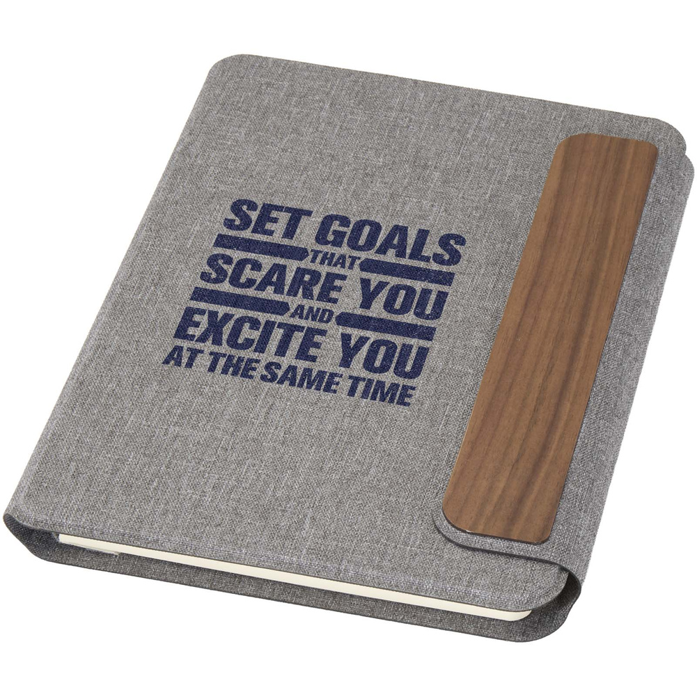 Etui w rozmiarze A5 Andean jest częściowo wykonane z certyfikowanego przez RCS poliestru pochodzącego z recyklingu, oferując bardziej przyjazną środowisku