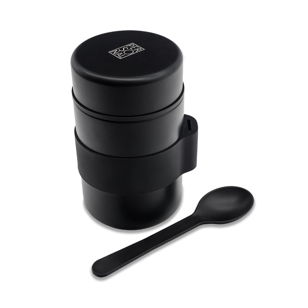 Pojemnik próżniowy o pojemności 460 ml. Doskonale sprawdzi się jako termos utrzymujący Twój lunch w ciepłej temperaturze. Dwie ścianki ze stali nierdzewnej, wewnątrz stal 18/8 o podwyższonej jakości. W zestawie łyżka. Utrzymuje temperaturę powyżej 40°C do 15 godzin.