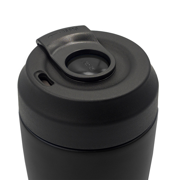 Szczelny kubek próżniowy z praktyczną pokrywką. Za pomocą przycisku, zamknięcie odskakuje na bok umożliwiając swobodne picie z kubka. Dwie ścianki ze stali nierdzewnej 18/8 o podwyższonej jakości. Próżnia pomiędzy ściankami zapewnia bardzo dobre właściwości termoizolacyjne. Utrzymuje temperaturę powyżej 40°C do 8 godzin.
