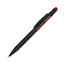 Długopis z czarnym korpusem i kolorową końcówką do ekranów dotykowych. Możliwość wykonana błyszczącego logo w kolorze nawiązującym do koloru końcówki. Niebieski wkład.