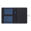 Organizer z wymiennym notesem A5 (64 kartek w kratkę, 70g/m2). Twarda okładka wykonana z tkaniny RPET. Organizer zawiera jedną dużą przegrodę, 3 mniejsze kieszonki, kieszonkę na wizytówki oraz uchwyt na długopis. Teczka zapinana jest na gumkę zaczepianą o metalowy haczyk.
