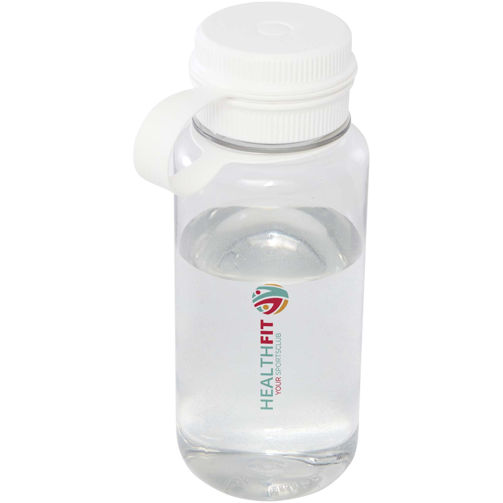 Butelka sportowa z pojedynczą ścianką wykonana z certyfikowanego przez RCS tworzywa RPET, wyposażona w zakrętkę i szczelną przykrywkę z wygodnym