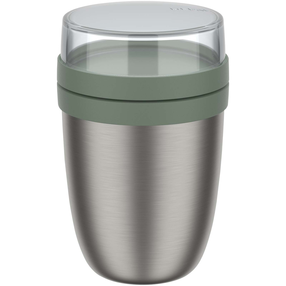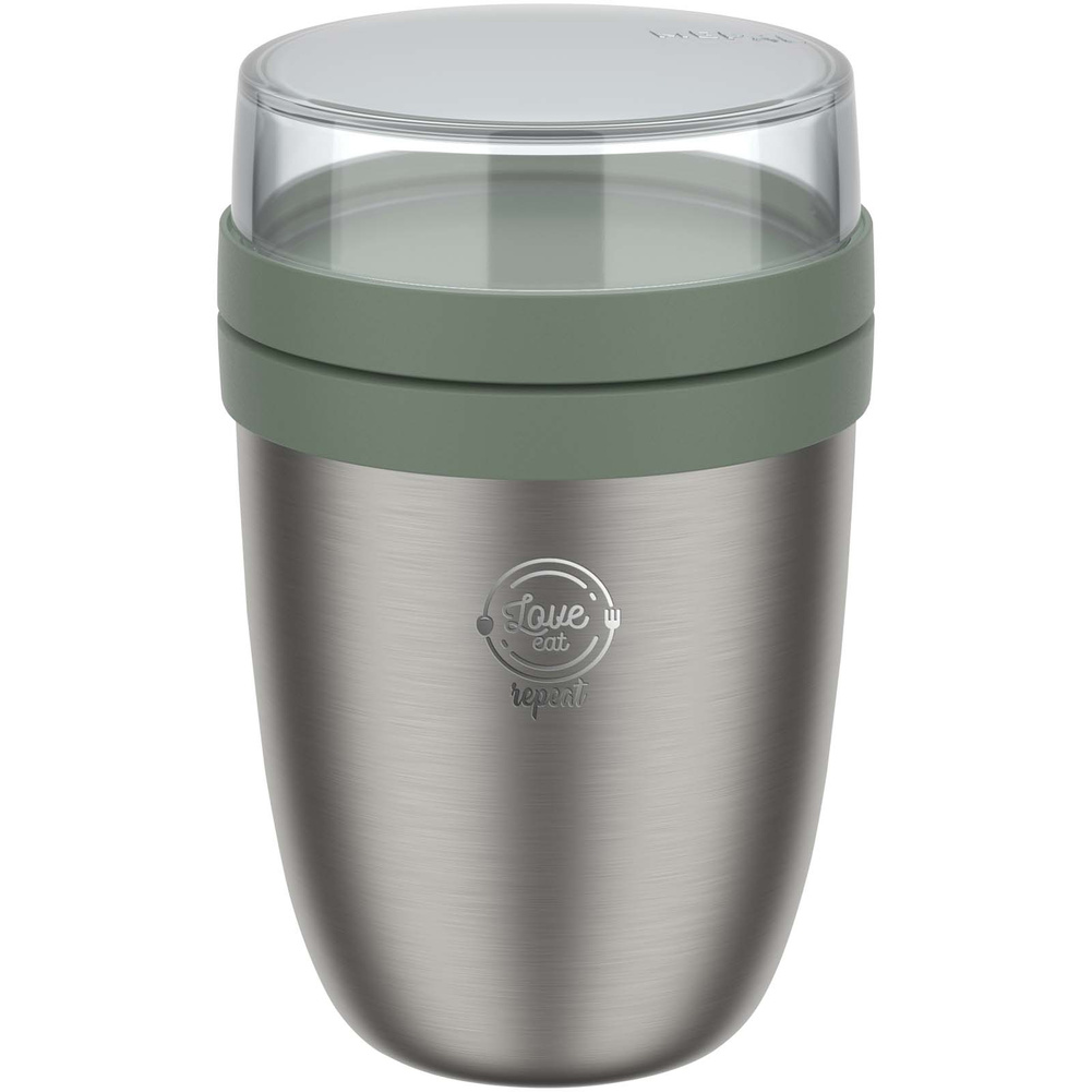 Izolowany pojemnik na lunch z dwiema przegrodami, które pozwalają na oddzielne przechowywanie różnych składników. Oba pojemniki mają oddzielne pokrywki, dzięki czemu składniki nie mieszają się ze sobą. Utrzymuje ciepło potraw przez 6–8 godzin lub zimno przez 12 godzin. Pojemność górnego przezroczystego pojemnika wynosi 200 ml. Pojemność dolnego pojemnika wynosi 500 ml. Wykonane z wytrzymałego materiału, dzięki czemu zewnętrzna strona pojemnika pozostaje chłodna i sucha. Zaleca się mycie ręczne. Plastikowe części nakrętki można myć w zmywarce.