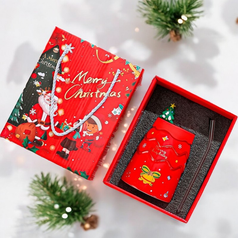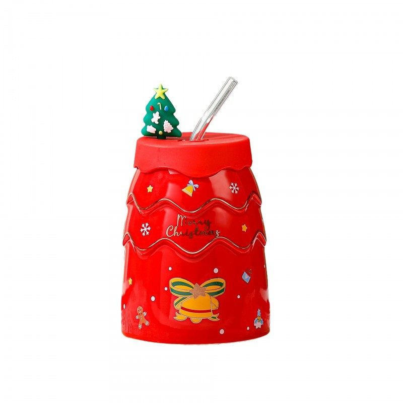 KUBEK CERAMICZNY z motywem świątecznym Zestaw z silikonową pokrywką i rurką Idealny gadżet dla każdego miłośnika kawy czy herbaty.