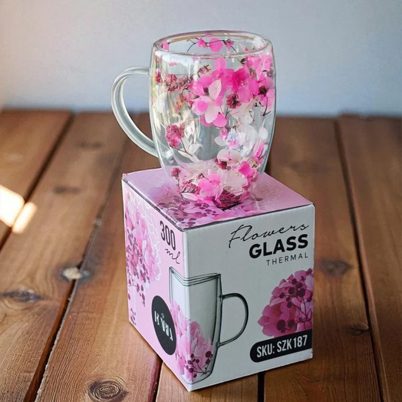 Szklanka termiczna z kwiatami w środku 300ml 1szt SZK187