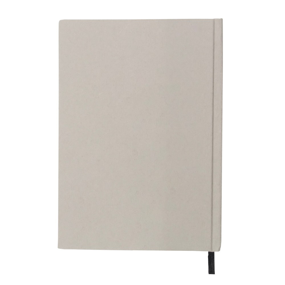 Notatnik B'RIGHT w formacie ok. A5, posiada 80 kartek w linie (160 stron), tasiemka zakładkowa umożliwia wygodne zaznaczanie ostatniej strony lub ważniejszych notatek, twarda okładka wykonana z bawełny z recyklingu, kartki z papieru z recyklingu