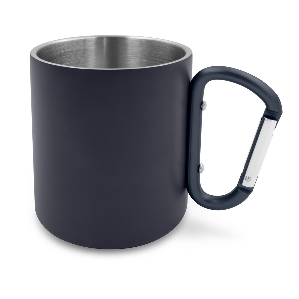 Kubek 280 ml z karabińczykiem, wykonany ze stali nierdzewnej z recyklingu, podwójne ścianki
