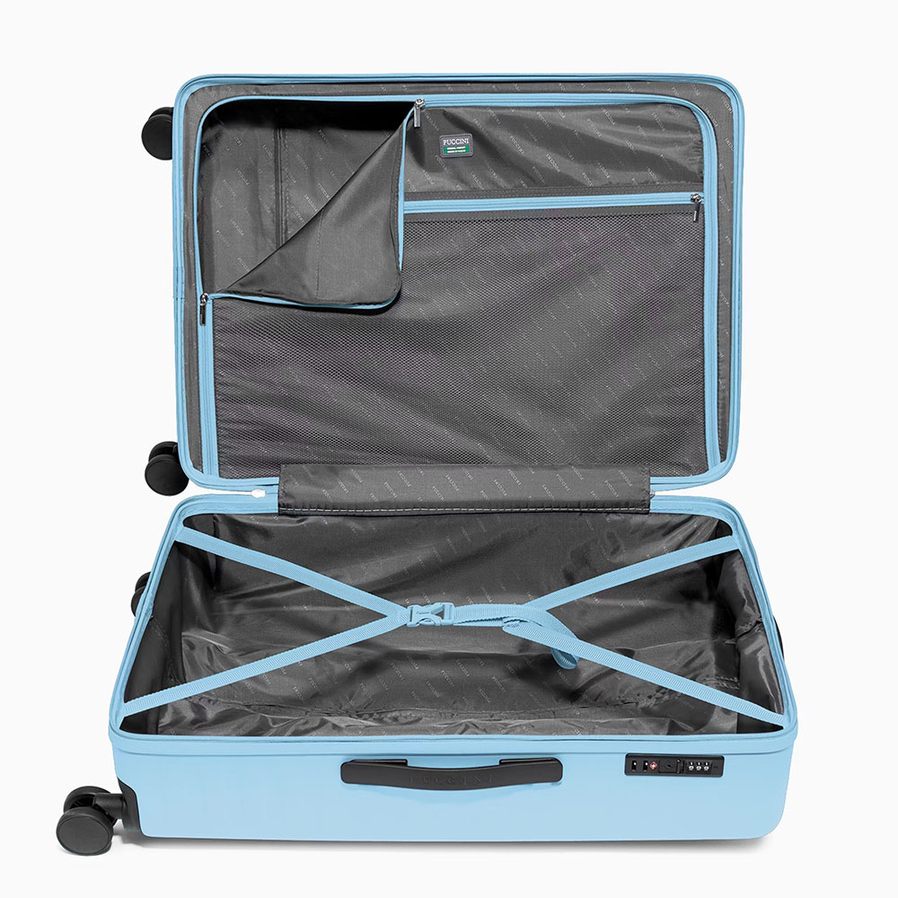 - walizka podzielona na 2 oddzielne komory wewnętrzne
