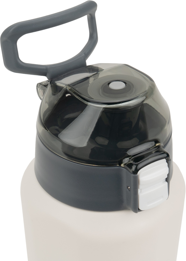 Butelka marki MoLu wykonana ze stali nierdzewnej pochodzącej z recyklingu, z podwójnymi ściankami. Pojemność 600 ml. Wieczko butelki otwiera się przez kliknięcie.