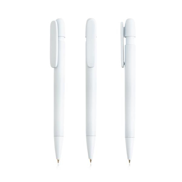 Długopis z recyklingowanego ABS. Wciskany długopis wykonany z plastiku pochodzącego z recyklingu, z szerokim klipsem. Ten długopis piszący na niebiesko to idealny wybór na praktyczny i ekologiczny prezent!