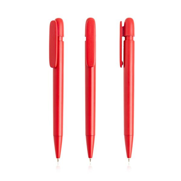 Długopis z recyklingowanego ABS. Wciskany długopis wykonany z plastiku pochodzącego z recyklingu, z szerokim klipsem. Ten długopis piszący na niebiesko to idealny wybór na praktyczny i ekologiczny prezent!