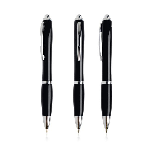 Długopis z PP pochodzącego z oceanu. Kupując ten długopis, pomagasz zmniejszyć ilość odpadów wynikających z braku ponownego użycia. Ten długopis piszący na niebiesko to klasyczny model z chromowanymi detalami.