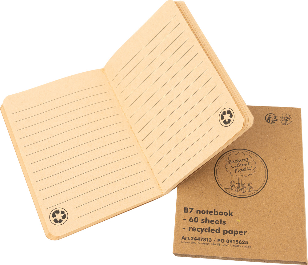 Notes B7 w linie to kompaktowy i ekologiczny wybór dla osób, które cenią sobie praktyczność i dbałość o środowisko. Wykonany z papieru pochodzącego z recyklingu, zawiera 60 kartek w linie o gramaturze 70 g/m², które zapewniają wygodę pisania i trwałość.Idealny do notowania ważnych informacji, tworzenia list czy zapisywania pomysłów. Jego poręczny format B7 sprawia, że zmieści się w każdej torebce czy kieszeni, stając się niezastąpionym towarzyszem w codziennym życiu.