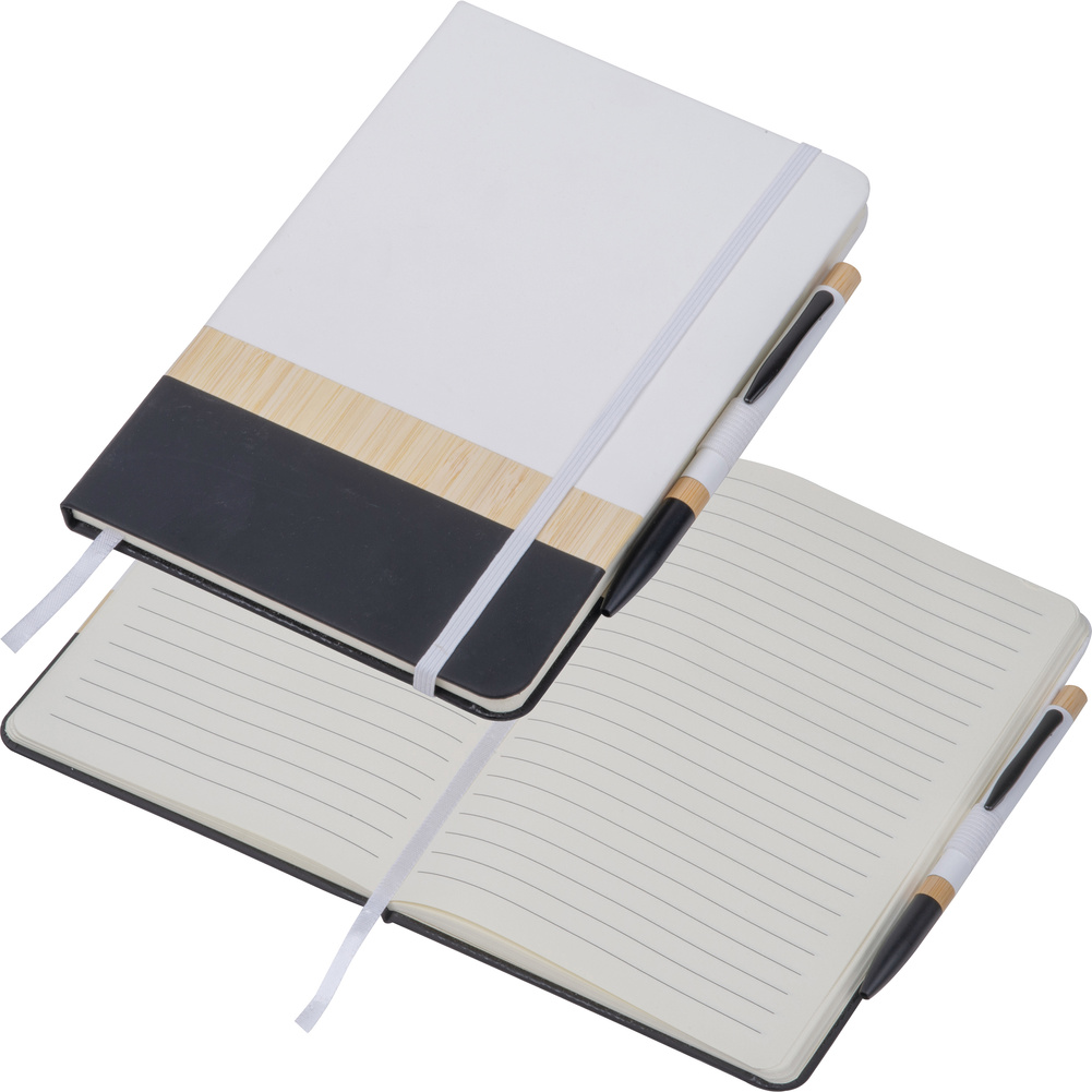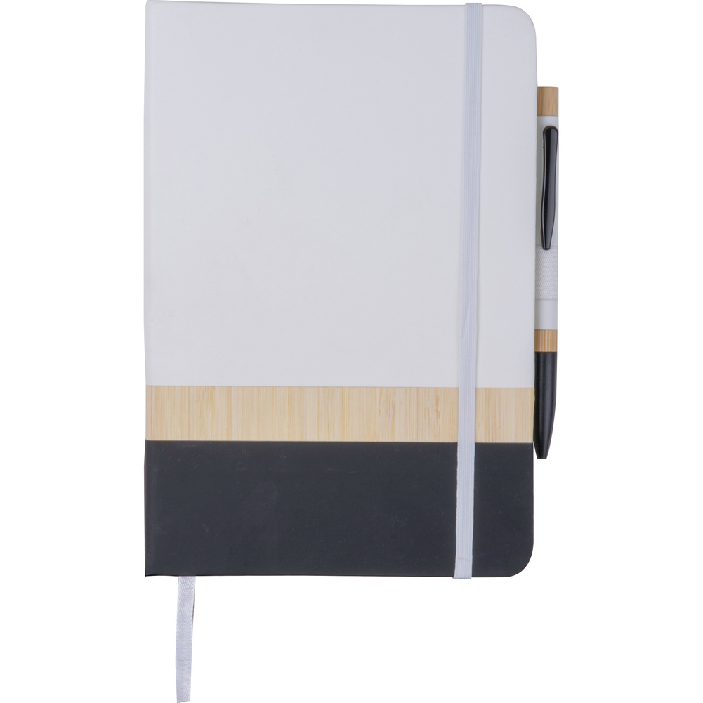 Notatnik A5 z długopisem. Notatnik wykonany jest z papieru z recyklingu (160 stron w linie), bambusa i poliuretanu. Pasujący długopis wykonany jest z aluminium i bambusa. Idealny do notatek, pomysłów, szkiców i nie tylko.