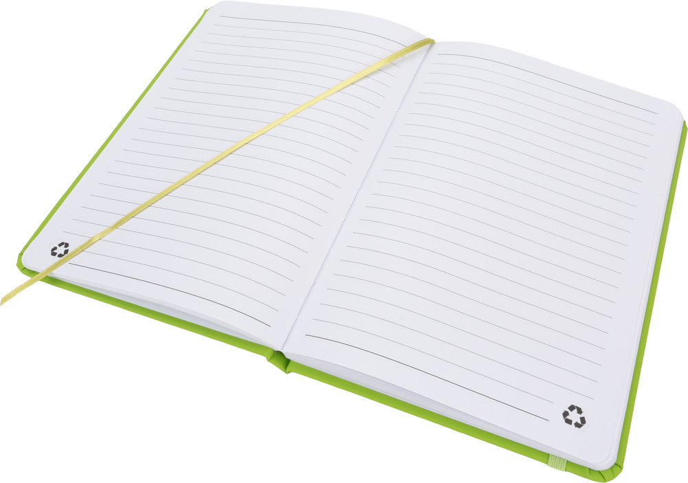 Notes A5, z 80 kartkami w linie, okładka i papier wykonane zostały z materiałów pochodzących z recyklingu.