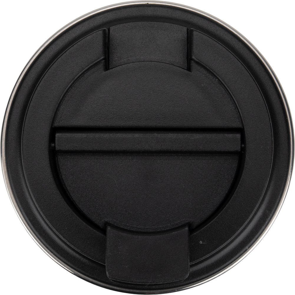 Kubek z podwójnymi ściankami ze stali nierdzewnej, z zewnątrz z plastikową powłoką z materiału pochodzącego z recyklingu, o pojemności 350 ml, z zamykanym ustnikiem.
