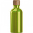 Butelka wykonana ze stali nierdzewnej, o pojemności 400 ml, z bambusową zakrętką do której został przymocowany karabińczyk.