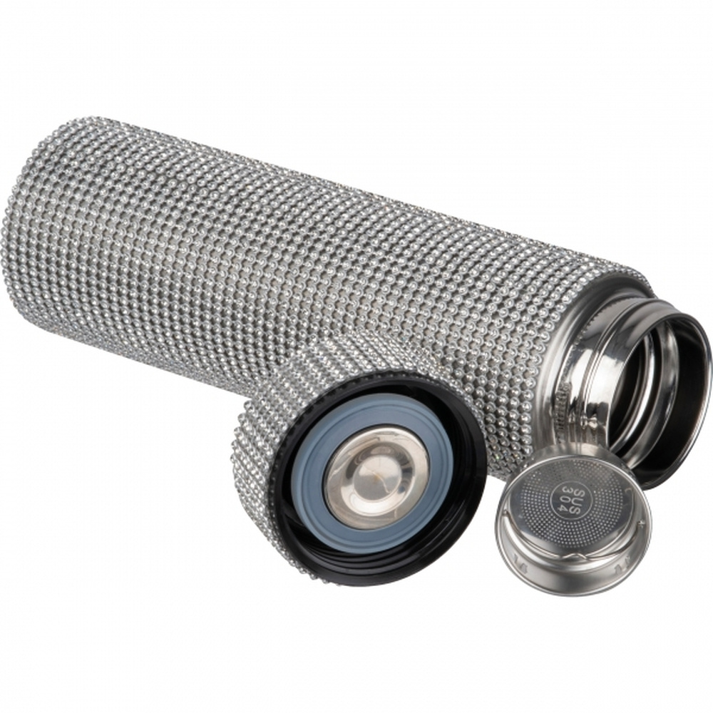 Butelka termiczna o pojemności 500 ml to elegancki wybór dla osób, które cenią zarówno funkcjonalność, jak i styl. Wykonana z wysokiej jakości stali nierdzewnej, ozdobiona cyrkoniami, zapewnia nowoczesny wygląd i solidność. Dzięki podwójnym ściankom, napój pozostaje ciepły lub zimny przez dłuższy czas, a szczelna konstrukcja eliminuje ryzyko wycieków. Jest całkowicie bezpieczna do kontaktu z żywnością, co czyni ją idealnym wyborem do codziennego użytku, w biurze czy podczas podróży.