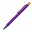 Długopis wykonany z aluminium z recyklingu, bambusowym przyciskiem, metalowym klipsem i wkładem piszącym na niebiesko.