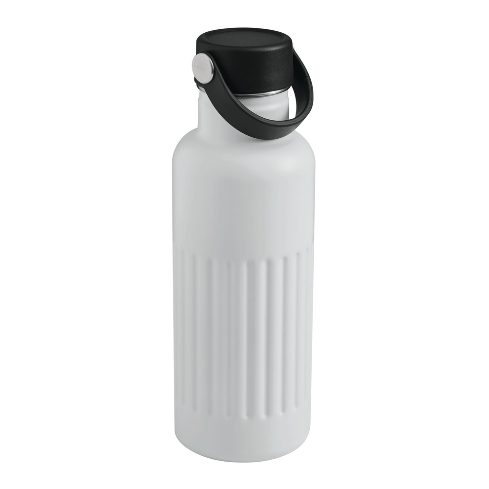 Próżniowa butelka WAVE TRAIL z podwójną izolacją. Wewnątrz wykonana ze stali nierdzewnej z recyklingu, na zewnątrz ze stali nierdzewnej. Posiada pokrywkę z bezpieczną zakrętką, silikonowym pierścieniem uszczelniającym i plastikowym paskiem do przenoszenia. O pojemności ok. 500 ml. Utrzymuje ciepło przez ok. 8 godzin i zimno nawet do 12. Zapakowana jest w pudełko.