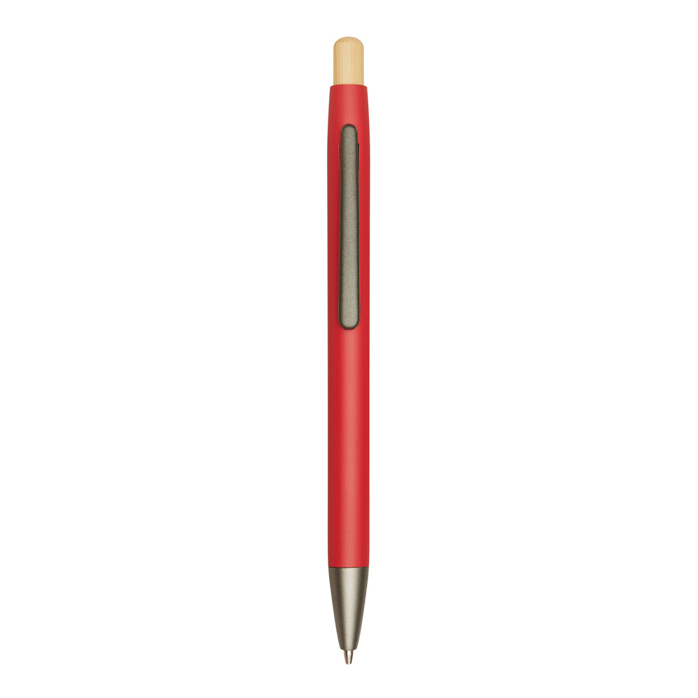 Długopis aluminiowy BAMBOO PUSHER z matowym metalowym korpusem wykonanym z aluminium pochodzącego z recyklingu. Posiada mechanizm naciskowy z bambusowym przyciskem i niebieski tusz.