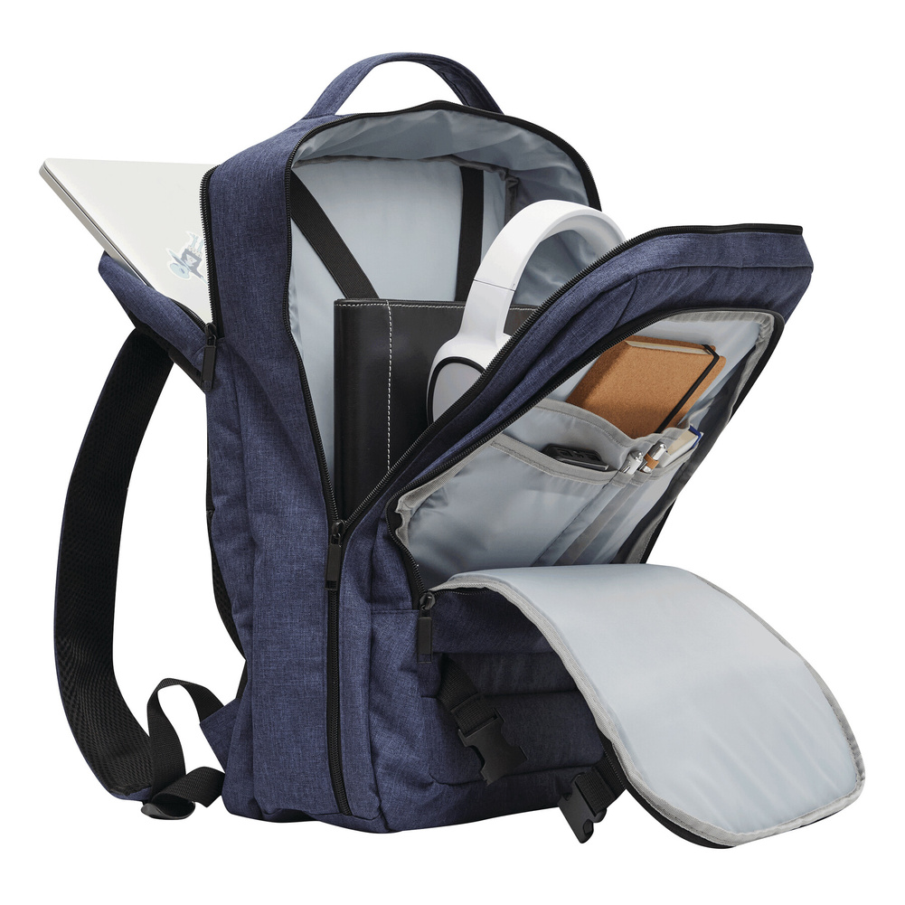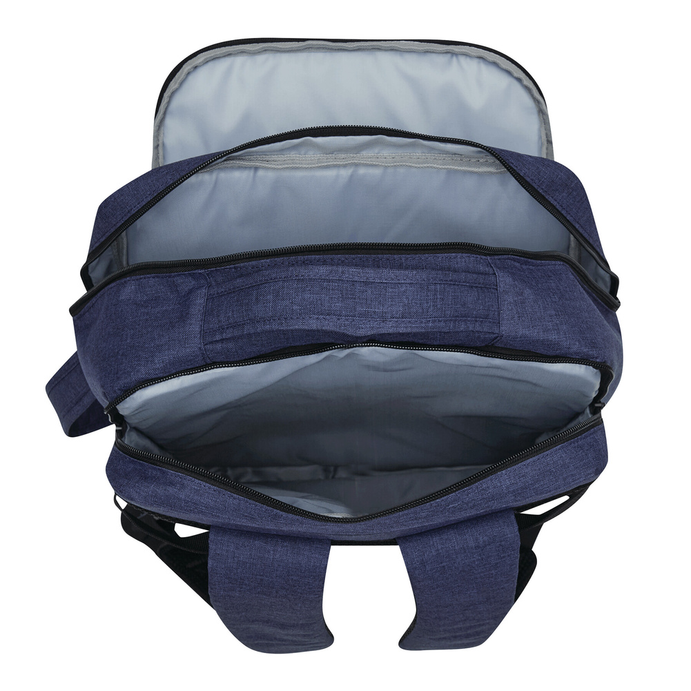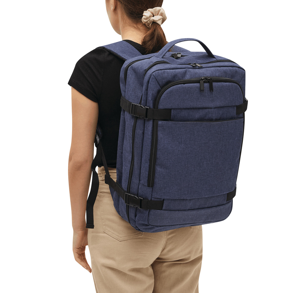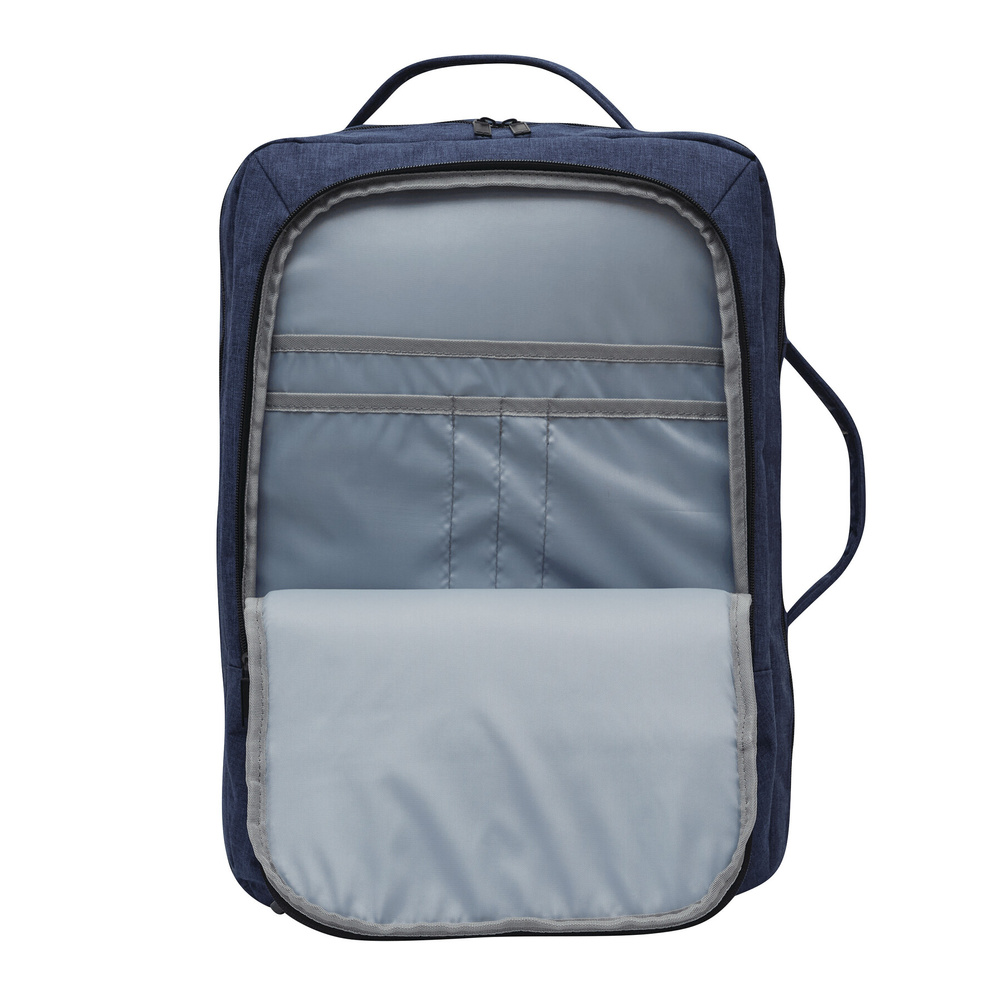 Plecak STEWARD posiada 2 przednie komory zapinane na zamek w tym jedną z organizerem (3 wsuwane kieszenie, 2 pętle na długopisy), 1 dużą wyściełaną komorę główną z paskiem do pakowania oraz 1 miękką komorę na laptopa – obie zapinane na zamek błyskawiczny. Dla wygody posiada też wzmocnione uchwyty (górny i boczny), wyściełane ergonomiczne szelki i plecy z paskiem do montażu na uchwyt walizki oraz 2 paski kompresyjne z zatrzaskami po każdej stronie.