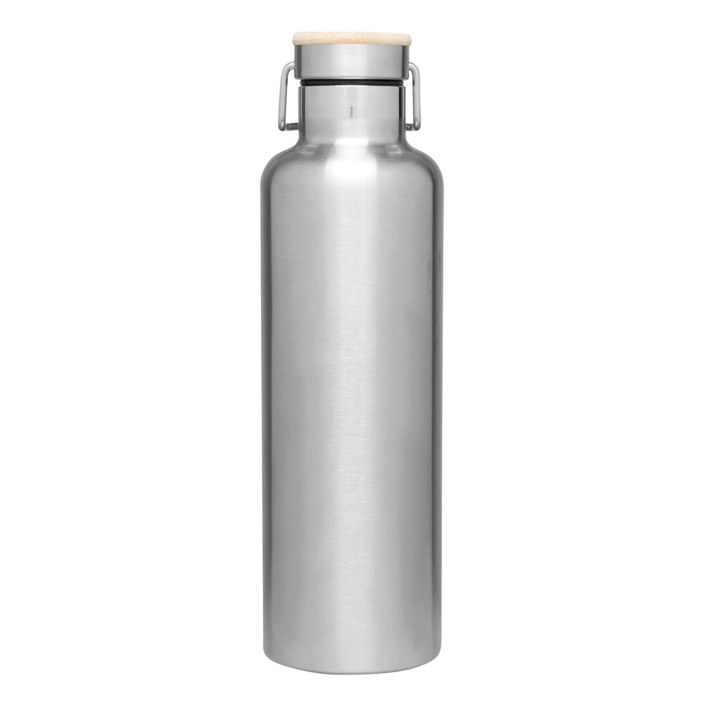 Próżniowa butelka do picia JUMBO MILITARY, dwuścienna: na zewnątrz i wewnątrz wykonana ze stali nierdzewnej, szczelna zakrętka z bambusowym wykończeniem, pojemność ok. 1000 ml, utrzymuje ciepło napoju przez ok. 8 godzin i zimno do 12 godzin.