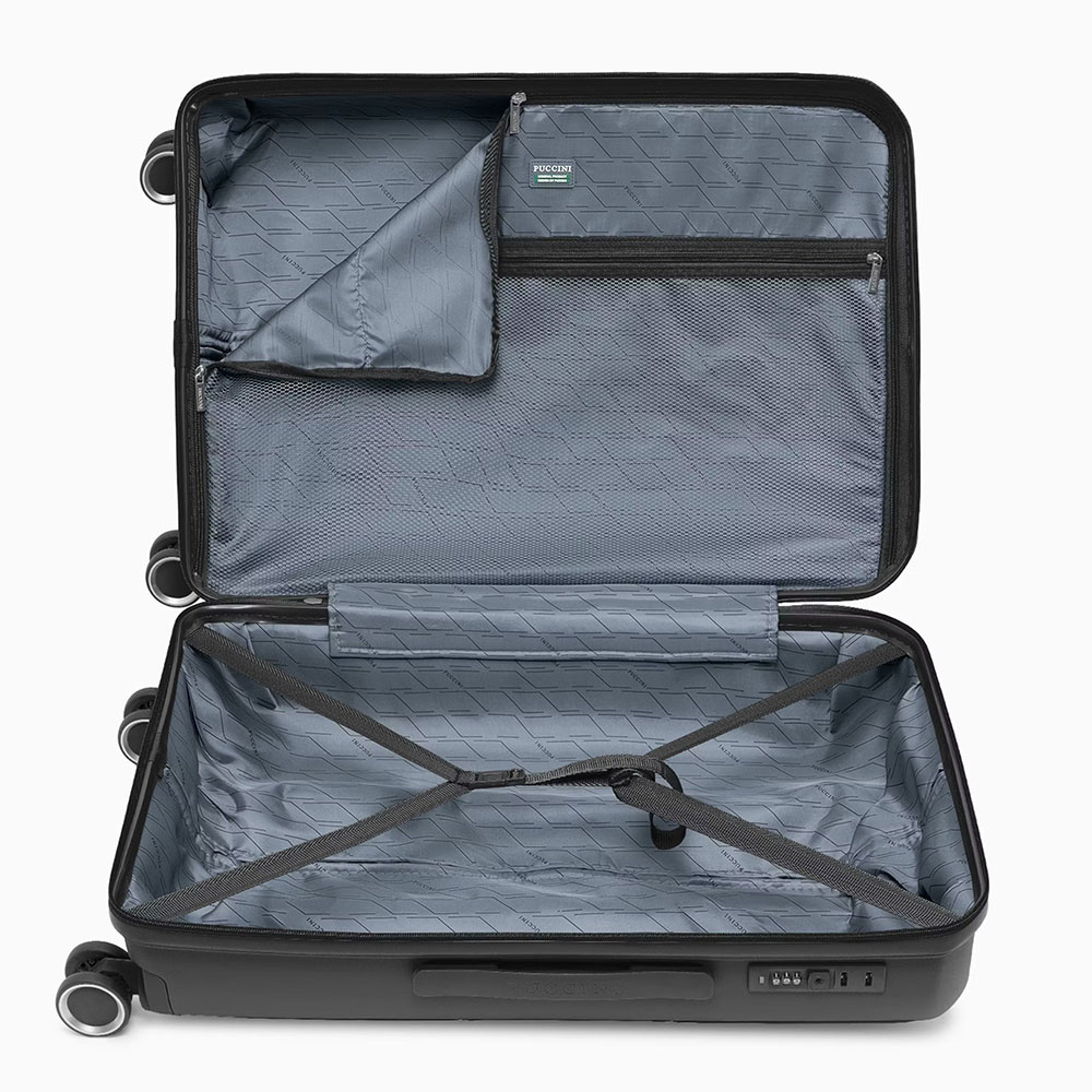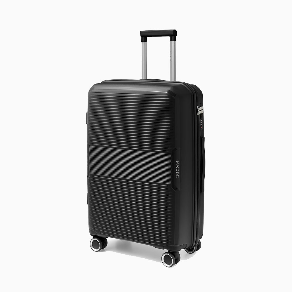 - walizka twarda wykonana z polipropylenu, materiału charakteryzującego się super lekką wagą i niezwykłą wytrzymałością