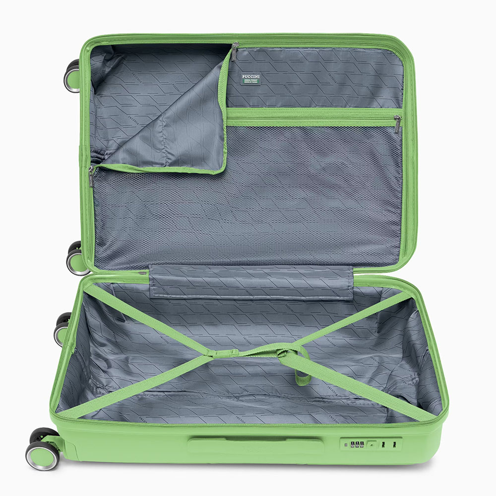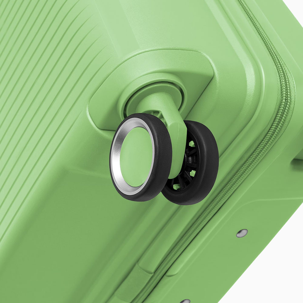 • walizka twarda wykonana z polipropylenu, materiału charakteryzującego się super lekką wagą i niezwykłą wytrzymałością