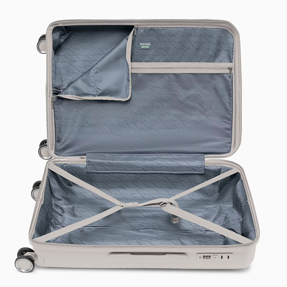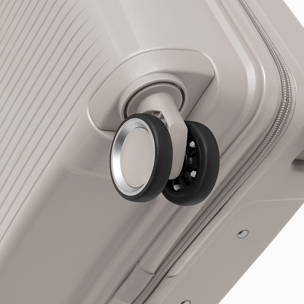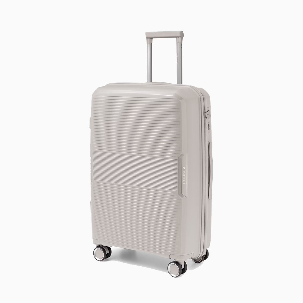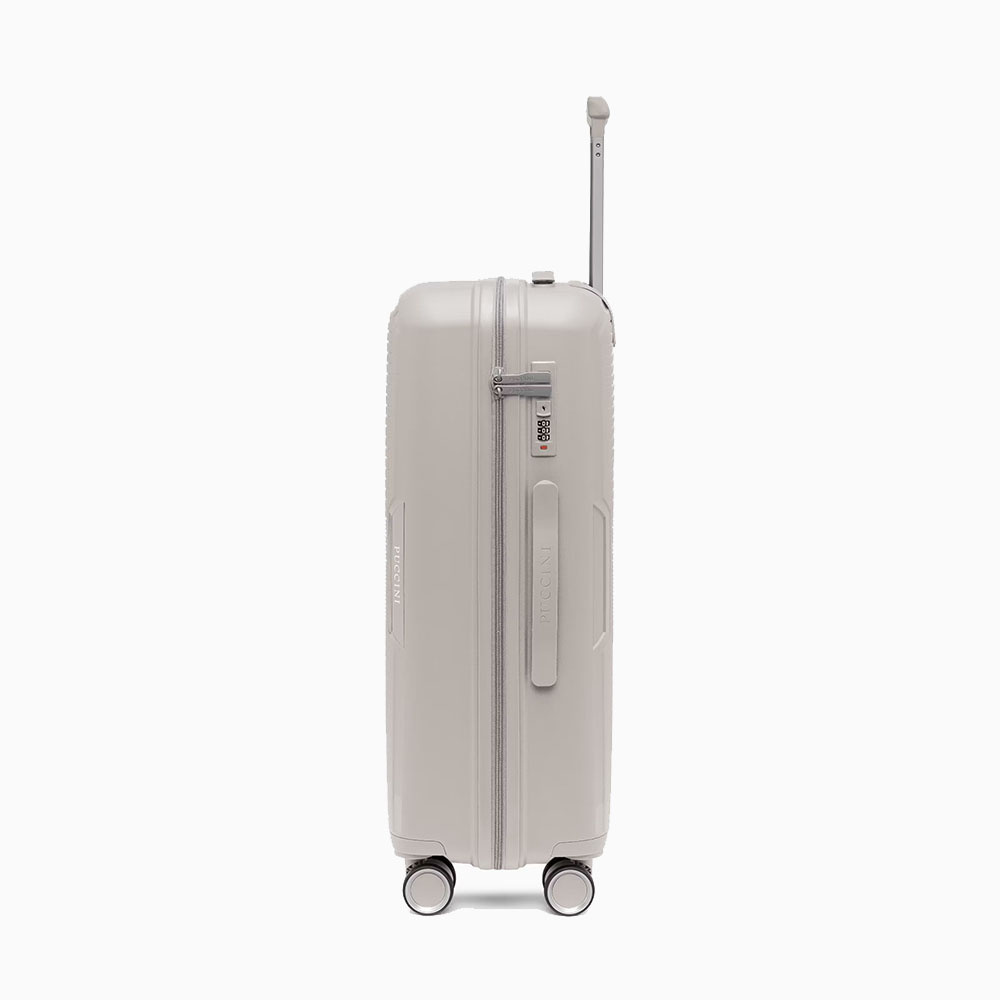 - walizka twarda wykonana z polipropylenu, materiału charakteryzującego się super lekką wagą i niezwykłą wytrzymałością