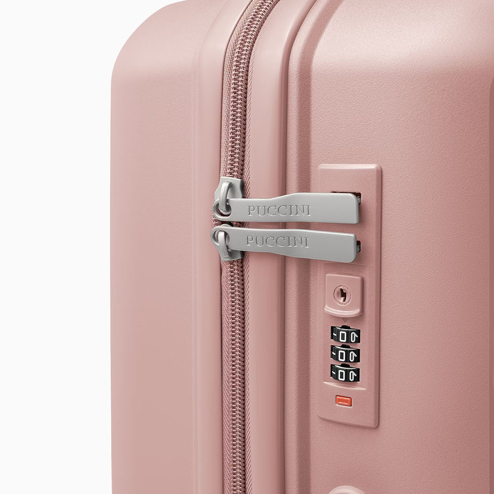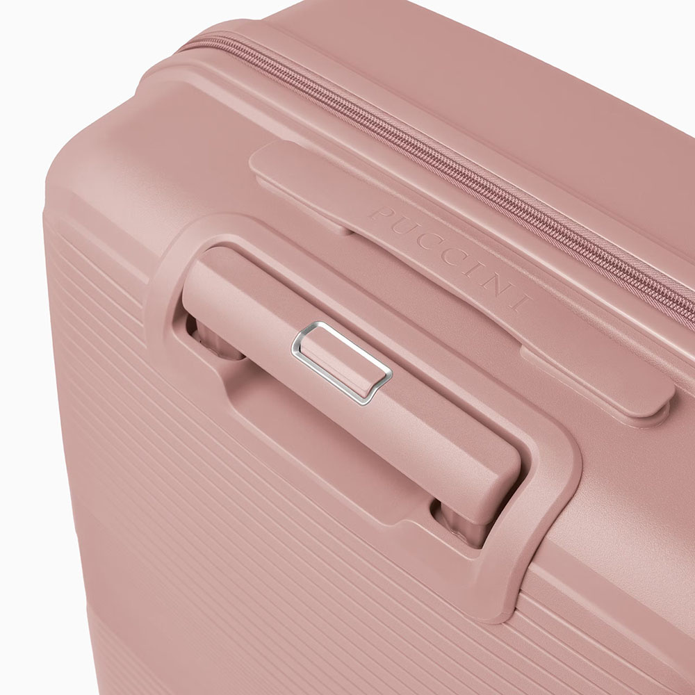 - walizka twarda wykonana z polipropylenu, materiału charakteryzującego się super lekką wagą i niezwykłą wytrzymałością