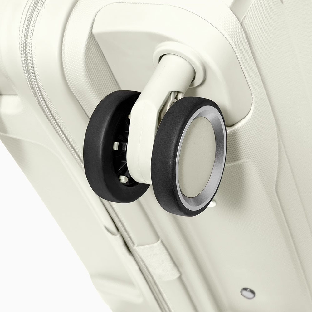 - walizka twarda wykonana z polipropylenu, materiału charakteryzującego się super lekką wagą i niezwykłą wytrzymałością